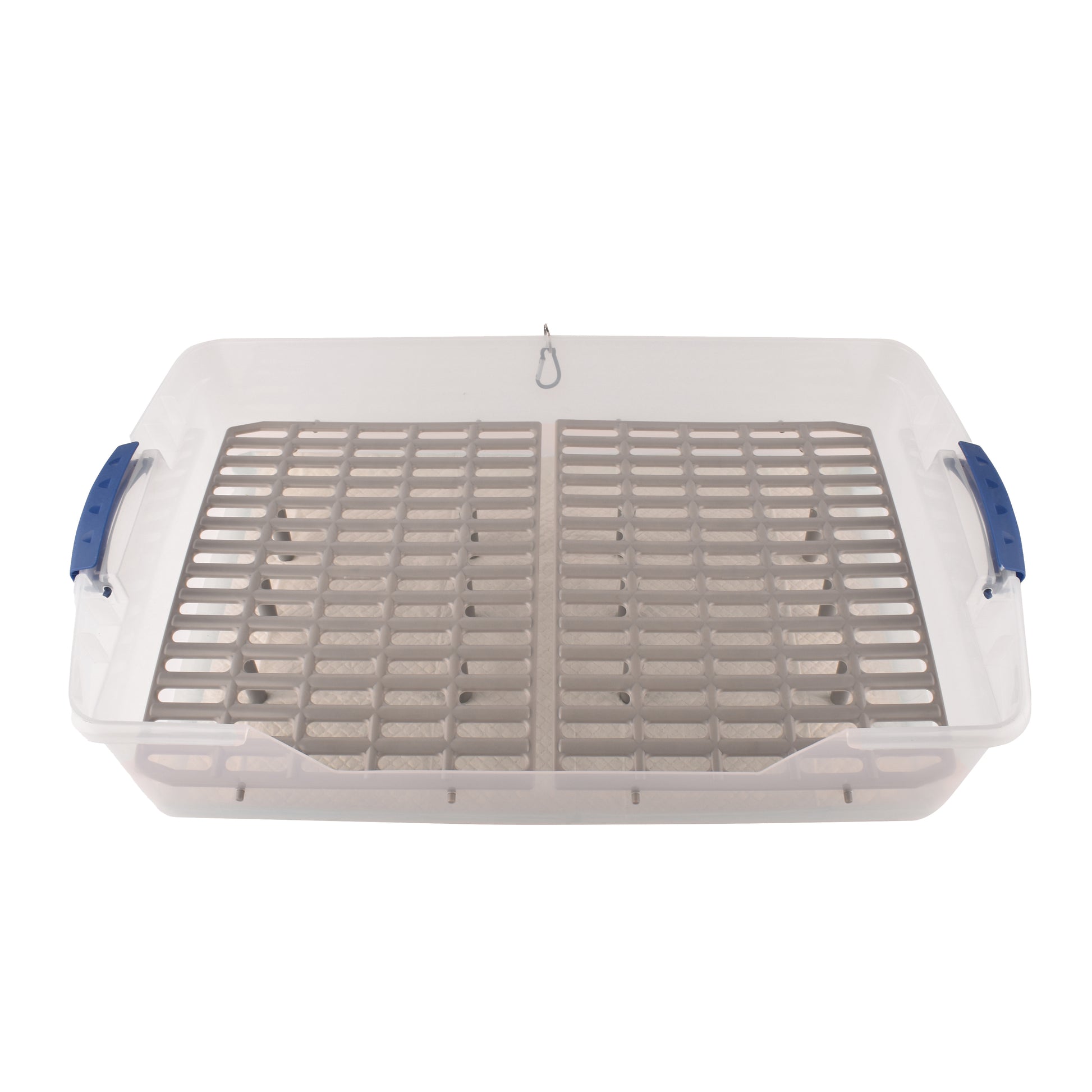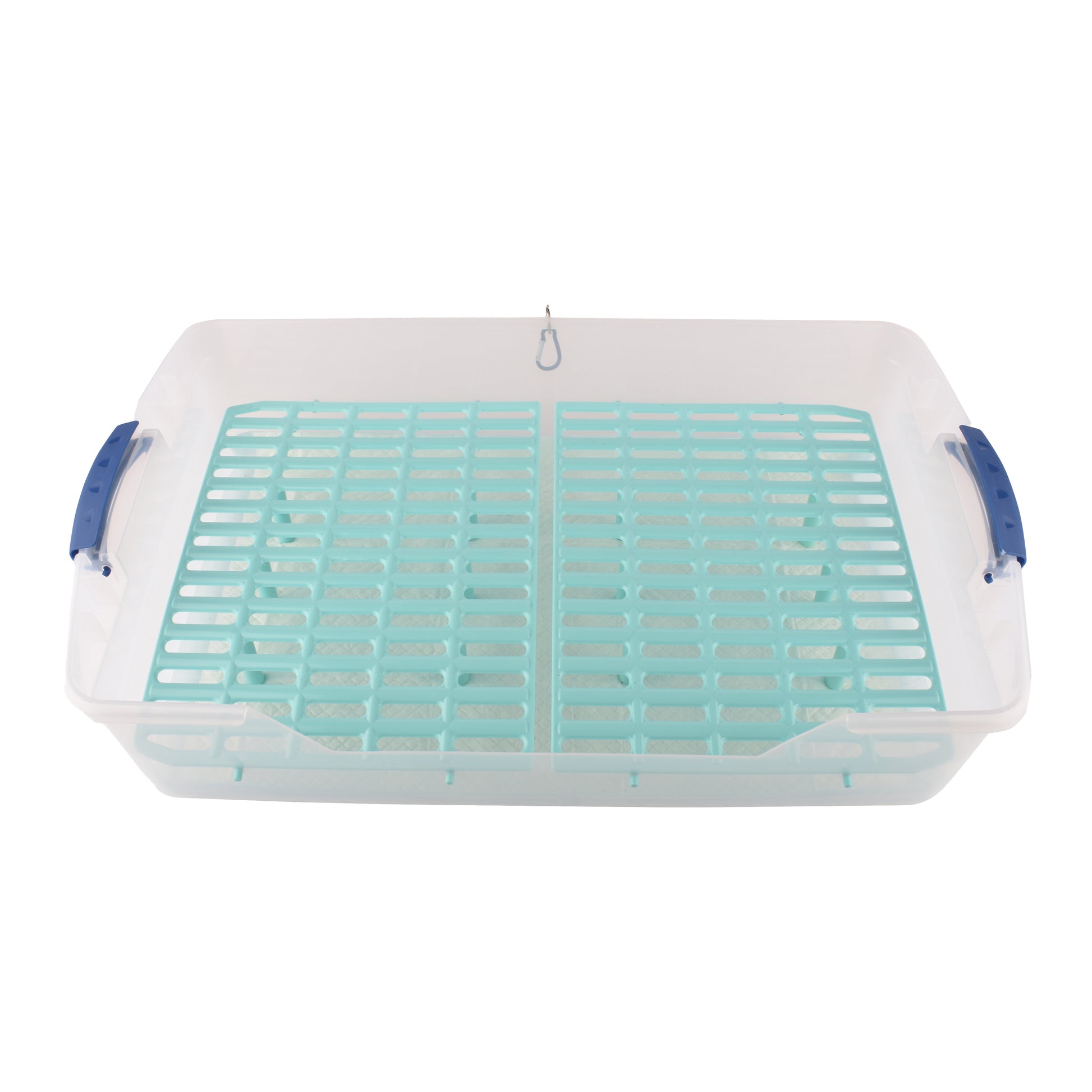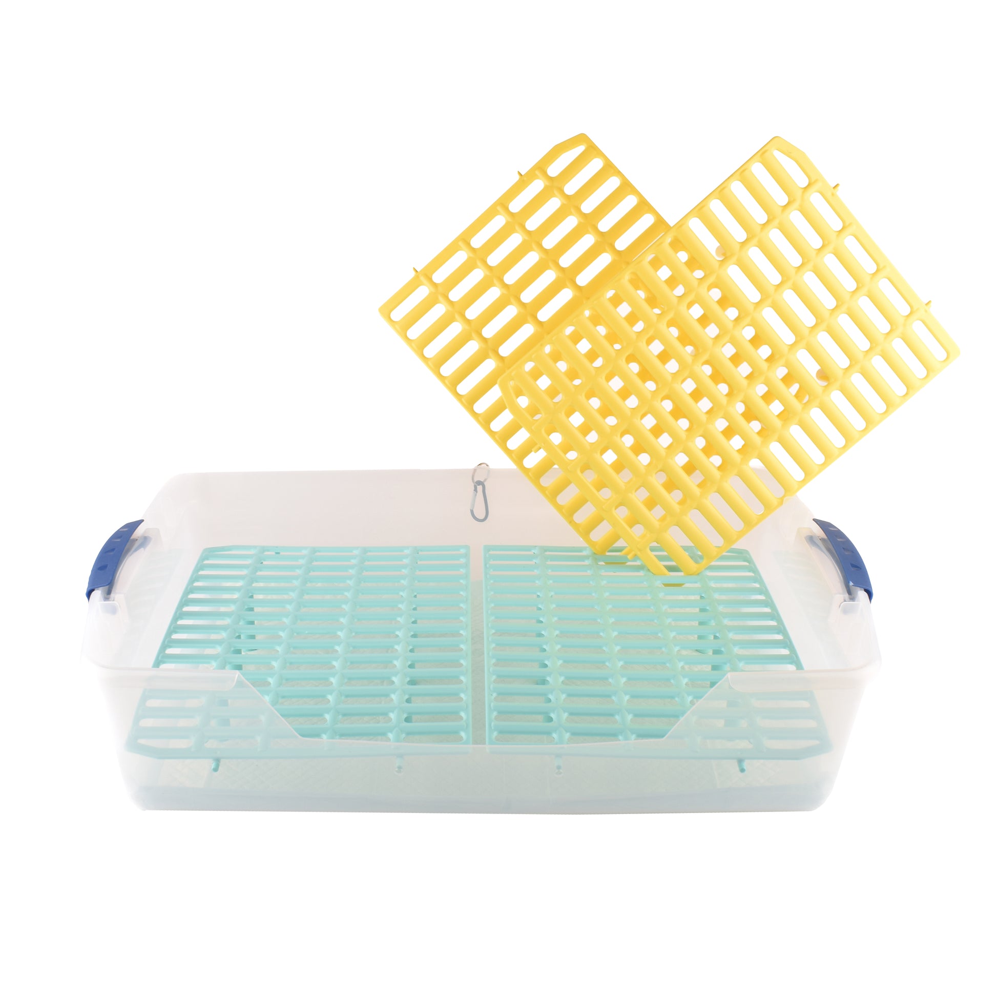 The LitterBuns Bin is a double floor mat bin designed for bonded pairs but perfect for singles. The floor mats are made of ABS plastic which is thick, smooth and sturdy making them safe and comfy for your buns precious paws. The floor mats are supported by custom posts, sized to fit the shape of the floor of the bin, to ensure full support for buns of all sizes.